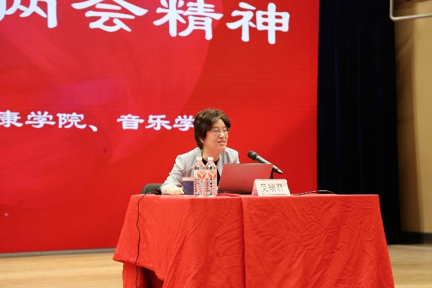 4月16日下午,为传达学习2025年全国两会精神,深入学习贯彻习近平新时代中国特色社会主义思想,助力教育强国建设, 偷情 、美术学院、体育与健康学院和音乐学院在闵行校区音乐厅联合开展专题辅导报告暨党委理论学习中心组(扩大)学习会,全国政协委员、农工党偷情 委员会主委、图书馆馆长吴瑞君教授作专题报告。四家单位全体教职工参加学习活动,活动由音乐学院党委书记赵旌旌主持。