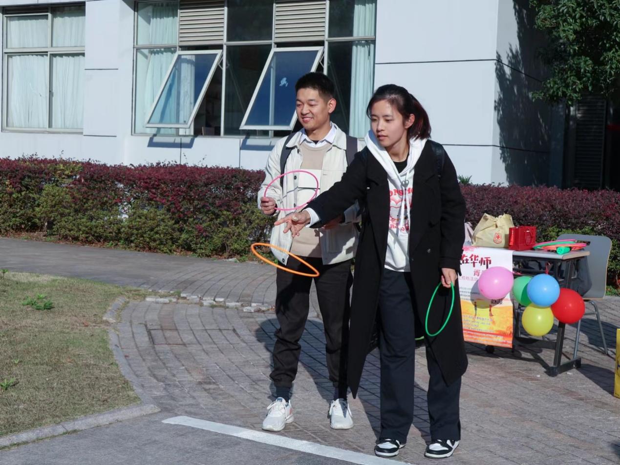 本次活动采取校园摊位打卡的形式,组织同学们参加互动游戏,根据积分排名颁发活动纪念品,现场气氛热烈。活动的游戏环节包括“心动的圈圈”、“321看这边”、“报纸拔河”、“踩气球”、“不要做挑战”等,同学们在趣味盎然的游戏过程中逐渐增进认识。